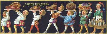 Turkey, roast beef, plum pudding, mince pies and rich fruit cake were